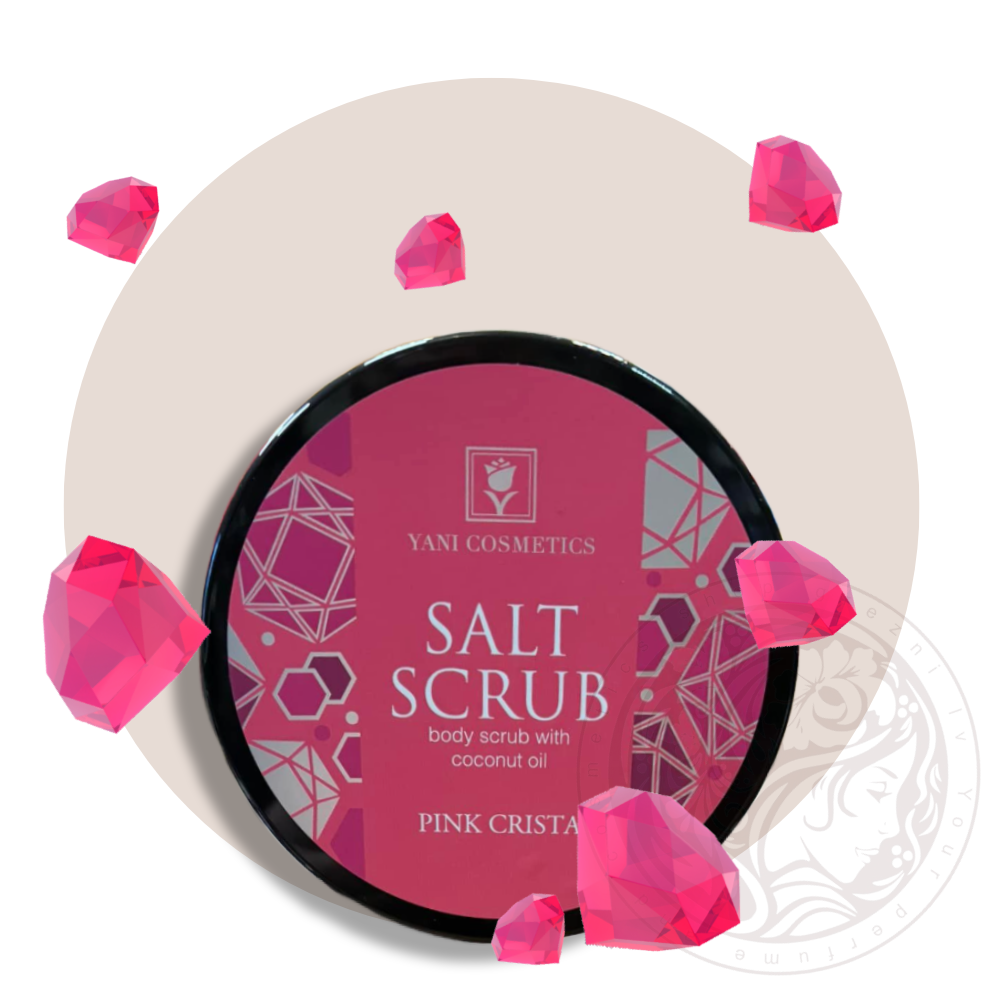 Skrubis Rozā Kristāls uz sāls bāzes , satur pīlingu nodrošinošas jeb abrazīvas daļiņas, kas veicina reģeneratīvos procesus ādas šūnās.